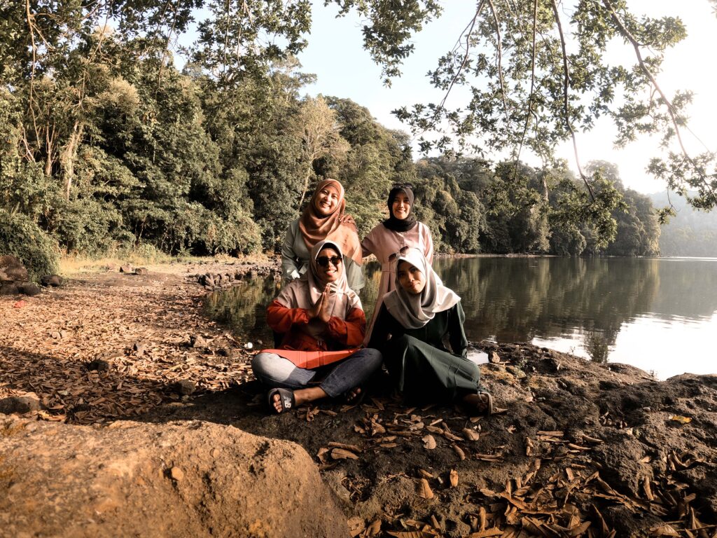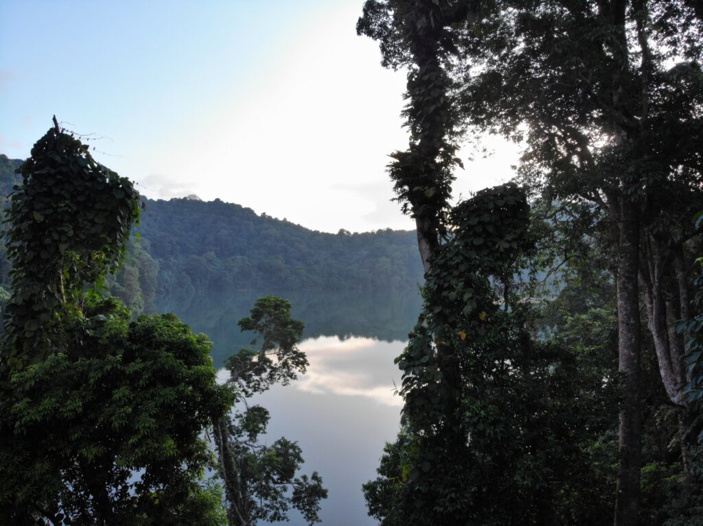 air danau berwarna kehijauan, dikelilingi pepohonan rimbun, udara sejuk, dan ketenangan yang sulit dijelaskan.