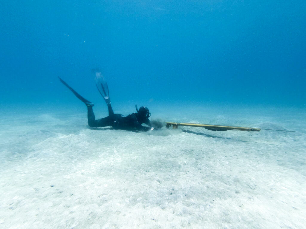 ✅ Peralatan spearfishing (masker, fins, snorkel, spear gun)